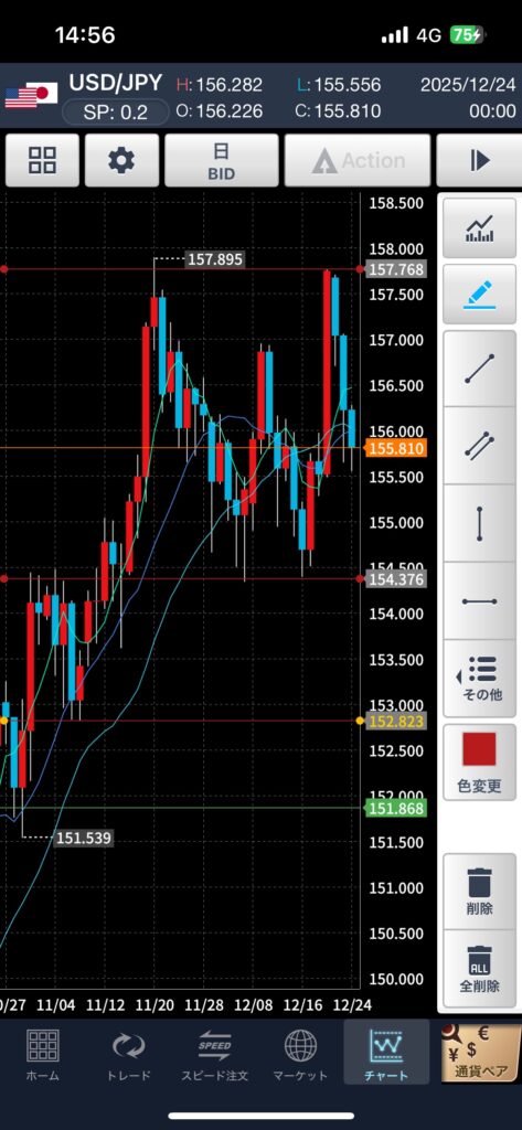 日足で赤線の微調整をしていきます。