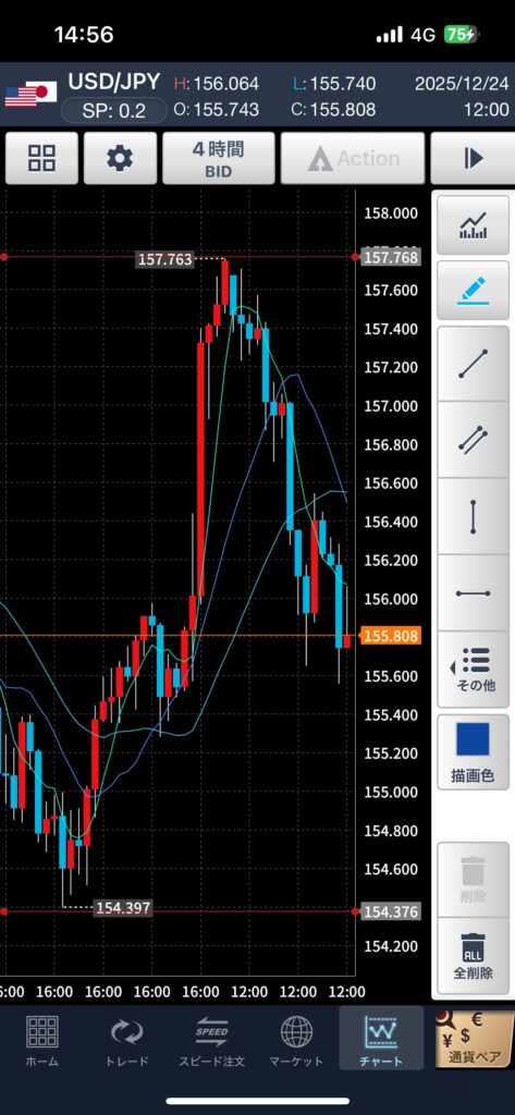日足から4時間足へ。