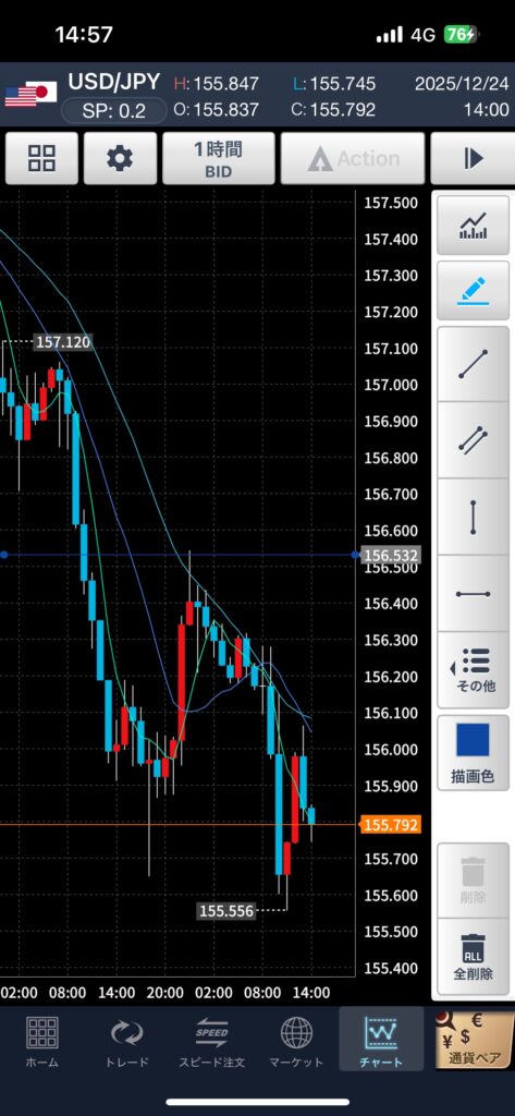 そしてチャートの見える範囲で全体の流れはどうかなーも確認します。