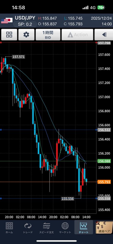 1時間足にしたら近くて現場青線しか見えません。
